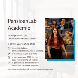 De werving voor de nieuwe lichting van de PensioenLab Academie is gestart. Dit opleidingstraject is bedoeld voor jonge professionals (22 t/m 35 jaar) die zich willen ontwikkelen tot pensioenfondsbestuurder. De opleiding start in september 2026 en wordt verzorgd door SPO, onderdeel van Nyenrode Business Universiteit.